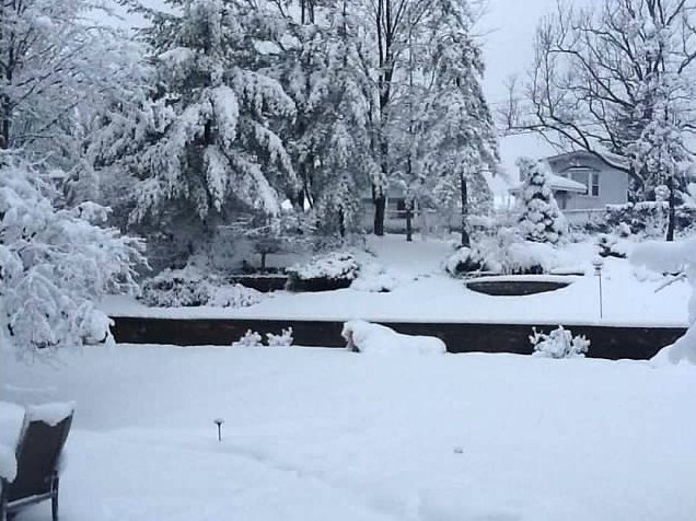 Front of the house - the tree limbs are so heavy with the wet snow. After Kyle left for work I ran around with a broom and tried to knock the branches a bit to get some of the snow to fall off. Don't want to lose any more tree limbs than we have to.